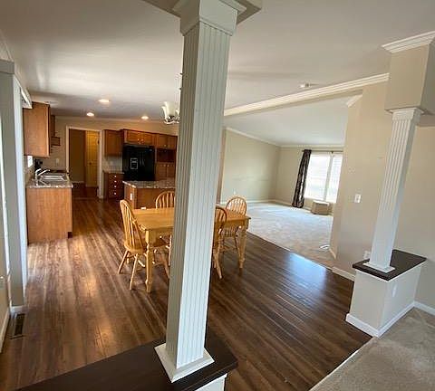 Active Adult 55+ Community, popular "Sage" Model 3 Bedrooms,2 Full Baths, Garage and Expanded Driveway for extra parking. Home has Open floor plan with large center Breakfast bar, sliders to synthetic deck off kitchen. Master Suite has full bath with 60" 1 seat shower. Homes comes with Synthetic Decking on Front porch. Home is pristine and shows like a model home. Lot Lease of $436 Monthly includes, Trash,Snow common areas,grass cutting Club House, which includes, Gym,library,game room, gathering room,Kitchen and outdoor heated pool, also $40/month for sewer fee. This one will not last!! More Photos to follow