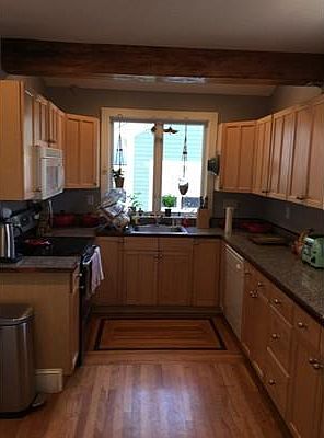 Free standing single family home in excellent condition. This home offers charm and character in abundance! It is somewhat an open floor plan with kitchen open to a sitting area that leads to the rear deck and well landscaped yard. First floor; Half bath, double closet in living area, good size living room leads into dining room with hutch, then into kitchen. Second floor. Bathroom with large shower stall. 2 good size bedrooms and a 3rd smaller room with a closet, makes for a great office/study. There is off street parking for 2 cars, Laundry in basement,. Tenant responsible for snow shoveling. Water bill is tenants responsibility.