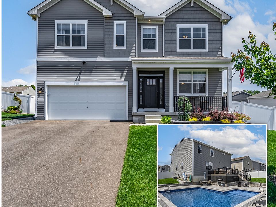 Stunning home located in Ocean Acres has all the must have features! Enter into your foyer that's accented with a wood beam & beadboard ceiling. Bright & airy kitchen entails; center island, quartz countertops, pantry, four piece stainless steel appliance set, bar stool seating, garbage disposal, subway tile backsplash & stainless steel sink overlooking into the family room. Family room is accented with a beautiful black shiplap electric fireplace with remote starter, recess lighting & ceiling fan. Large Master suite includes full bathroom with double sinks, barn door & walk-in closet has built-ins! Full finished basment has vinyl flooring throughout. Upstairs encompasses master suite, 3 other spacious bedrooms, den/bonus area & full hallway bathroom. White vinyl fence is 3 years old that borders the backyard. Brand new L shape saltwater pool is surrounded by a gorgeous paver patio. Spacious deck is only two years old & has trendy black metal railings. Other features include: Garage door opener with key pad, soffit lighting, freshly painted neutral paint tones throughout, laundry room, spacious dinning room, sprinklers, recess lighting, ceiling fans & natural gas.