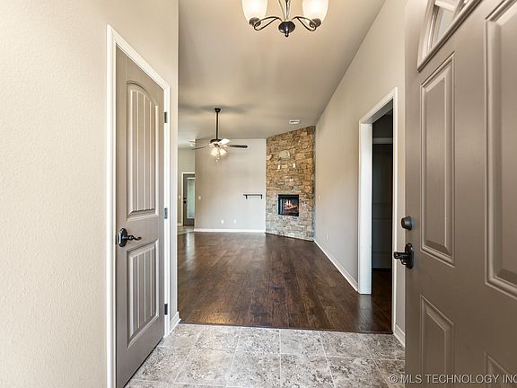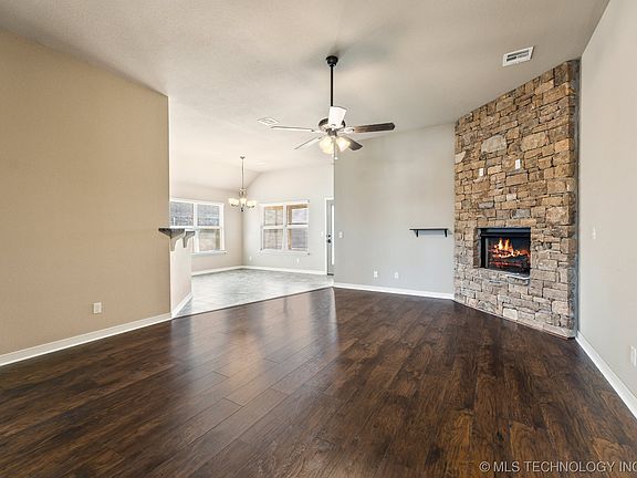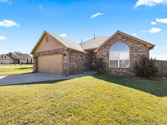 Darling 3 bedroom, 2 bath split floorplan home in quiet neighborhood. Fully fenced yard with gate to greenbelt behind, easy access to HWY 75 and Tulsa Hills. Extra living space in screened-in back porch. Kitchen has eating bar and pantry, whirlpool tub and separate shower in master suite, tile and wood floors and a beautiful corner fireplace. Come see your new home today!