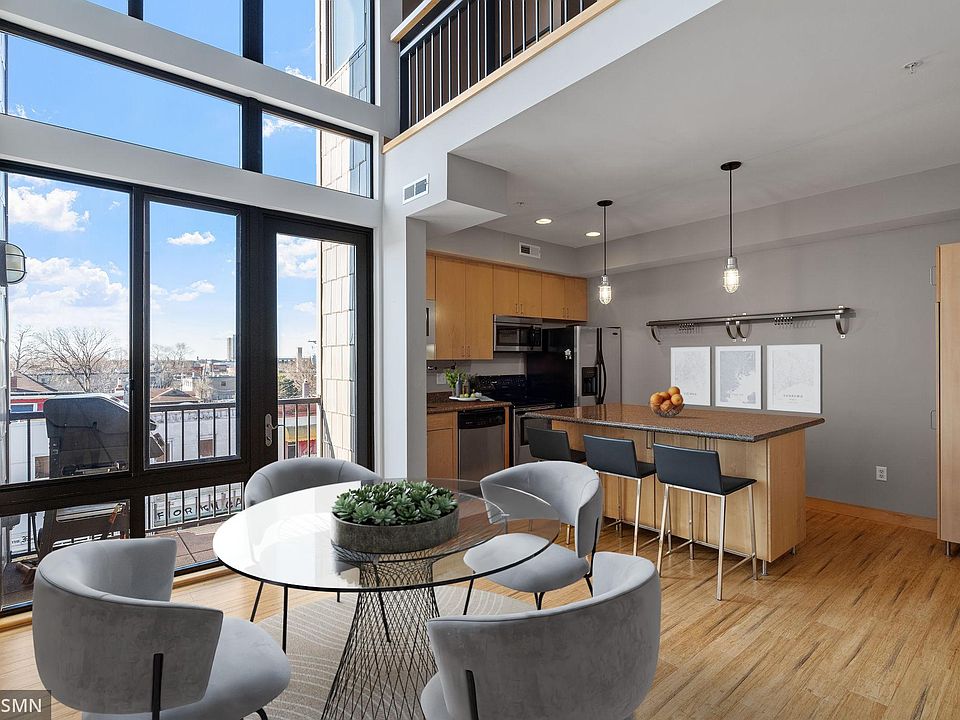 This stunning south-facing condo loft bathes in natural light, boasting dramatic 20 FT floor-to-ceiling windows. Located in a tranquil building within the vibrant Eat Street area, it offers a minimalist arts quarter aesthetic. The modern kitchen features an island with seating for six, perfect for hosting. Additional perks include private underground garage parking and spacious storage. With two living areas, two bedrooms, two baths, and balconies off the living room and master suite, it's an entertainer's dream. Plus, it's conveniently close to Downtown, Uptown, city lakes, and a myriad of excellent restaurants, making it an exceptional urban living choice.