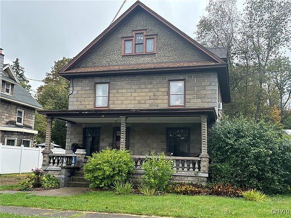 Zoned as a multiple residence property, check out this grand, stone 2- story home in the Village of McGraw. You have the opportunity for investment/income in the 2 car garage with unfinished, 2 bedroom, 1 bath apartment upstairs with private deck. The apartment needs to be up to Village of McGraw code prior to being rented. Enjoy quiet time on the full front porch that is covered, the 2,300 sq. ft. house includes 3 bedrooms and 1 bath. The large windows keep it bright and you will love all the natural hardwood floors and trim throughout. The kitchen has been updated with luxury vinyl flooring and the formal dining room is gorgeous with bay windows. Heat with natural gas and add a wood or pellet stove in the living room with existing floor to ceiling, stone hearth to save on your heating budget. The washer/dryer are located on the second floor and there's also hook up for each in the basement.Then head upstairs to the spacious, full attic ready to utilize however you like.