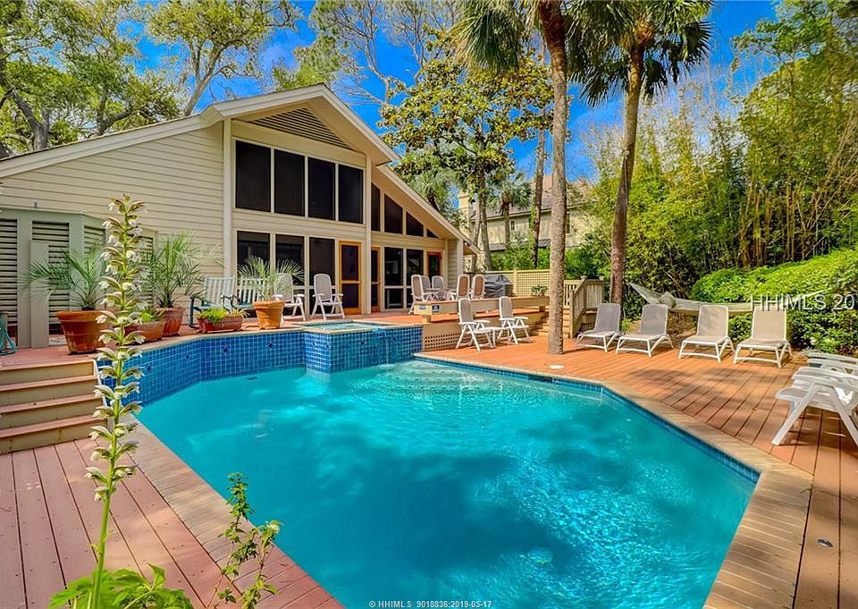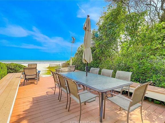 Spacious OCEANFRONT home located in the prestigious "Gold Coast" of the Sea Pines community. Features it's own private beach walk and oceanfront deck. 5 bedrooms, 4 bathrooms. All on one floor. House shows and rents extremely well. Currently on the short term rental market. Spacious living room with high ceilings and fireplace. Master has sitting room and its own screened porch. 4 guest bedrooms with large family room and wet bar in the middle. Large, screened-in porch overlooking the heated pool and Jacuzzi with wet bar, refrigerator and ice maker. Large pool deck with plenty of seating. Prime location. Best oceanfront value in Sea Pines.