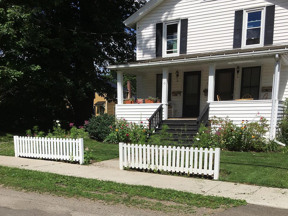 Cute and cozy this village duplex on a street of beautiful homes, is safe and convenient, Walking distance to grocery, library and lake Chautauqua. One large bedroom and one small bedroom W/ full bath up. Stove and refrigerator furnished and includes in suite laundry hookups. Big front porch, side deck as well as a large back yard. Small pet is welcome with responsible pet owner. Available October 2020 this 2 bedroom 1 bath is well cared for and has off street parking for one car. Water and sewer paid by owner. No pets no smoking. Landlord pays water and sewer charges. Tenants pay all other utilities.