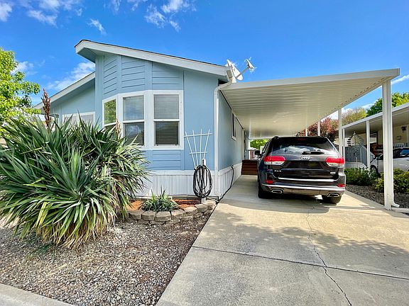 This quality built Champion home is light and bright with an open floorplan, new laminate waterproof Western Oak floors, new paint inside & out! SS appliances including a double oven and an induction range with an island. A laundry room with a pantry. Breakfast nook and a formal dining room or make it your home office! High ceilings and windows for great natural lighting. Nice decks to enjoy the outdoors and low maintenace yard. The main ensuite has a garden tub, walkin closet and dual vanity. Includes a large shed and carport area. San George Estates is a premier all-age park with many amenities including a clubhouse, playground, billiards and RV Storage. Views of the mountains surrounding the Rogue Valley in beautiful southern Oregon! Up to two pets are allowed with Park prior approval. Easy access to parks and golf courses! Buyer to do their due diligence
