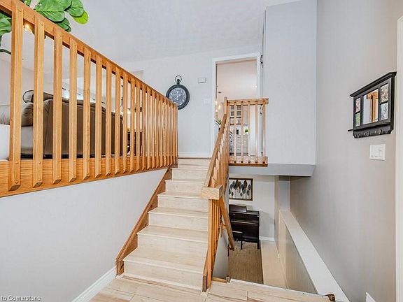 Welcome to this beautifully maintained and updated raised bungalow in a sought after Family friendly neighbourhood. Pleasant curb appeal with double concrete driveway and attached double car garage. You are welcomed into a spacious foyer (addition in 2009) with extra closet/cabinet space for guests and access to the garage. The main floor offers a lovely renovated kitchen (2020) which has an island/breakfast bar, plenty of cupboard and counter space, appliances and garden door to the deck for easy BBQ'ing. Directly off the kitchen is your dining area which is open to the bright living room with a large bay window. This creates a great space for entertaining Family and Friends. There are 3 good sized bedrooms on the main floor and an updated 4 piece bathroom. The lower level is finished with a cozy recreation room, which has a corner woodstove and brick mantel. There is a potential 4th bedroom, oversized laundry room (currently used as a salon) and a 3 piece bathroom on this level as well. The backyard has a stamped concrete patio, hot tub, deck and yard space for gardening and children to play! Enjoy all this property has to offer.