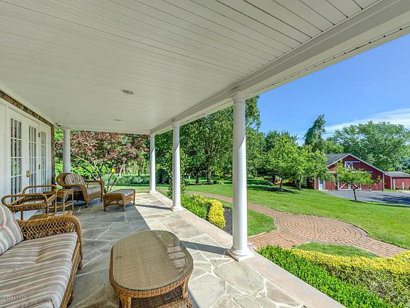 ''GENTLEMAN'S HORSE FARM'' sits on over 4 sprawling acres of meticulously manicured grounds. Prestine 5 bedroom, 3.5 bath home features decorative moldings, cathedral ceilings and a finished basement with a wine cellar. Finished 3rd floor attic space makes a great rec room, in-law quarters or 5th bedroom with walk in cedar closet. Breathtaking backyard features a heated Anthony Sylvan Oasis Pool with waterfall. Entertain out of the spacious pool house fully equipped with kitchen, bar and bathroom. Property offers a 4-5 stall barn with Tack room, 2 paddocks with newer fence, 2 run in sheds and chicken coop. This estate has it all and more! Must see this true COLTS NECK GEM!