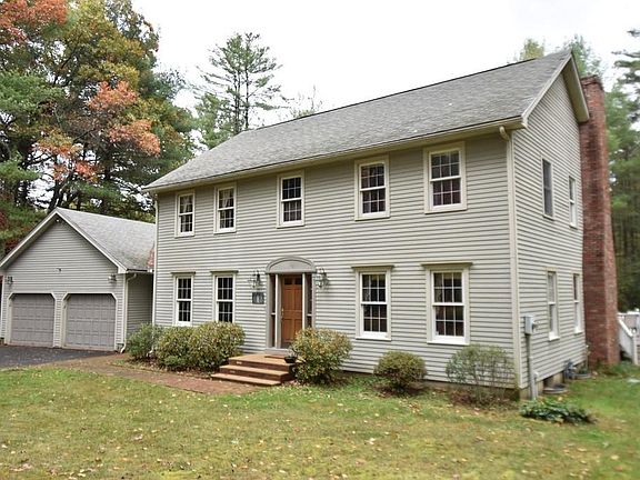 Lovely Colonial home on private, 1.3 acre lot in exclusive Southampton neighborhood. This spacious home is immaculate and in move in ready condition and offers a versatile layout. First floor has a formal living room with French doors, dining room with French doors, family room with fireplace and large eat-in kitchen with breakfast nook. The second floor offers four generous bedrooms including master bedroom with cathedral ceiling and master bathroom with shower stall and Jacuzzi tub. Two full and one half baths have all been updated in recent years. Large deck overlooks private backyard and IG pool. Economical natural gas heat, central air, central vac, first floor laundry and security system are just some of the amenities.
