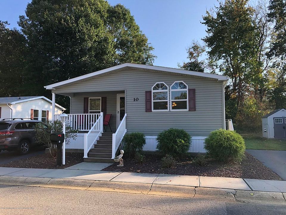 Only 6 years young and ready for the next retiree to call this ''Home''! Lovingly maintained and great floor plan! 2 bedrooms and 2 full baths, plus a great office area. Large kitchen with island. Great location, backs up to private area. Large shed for storage. And still time left on the homeowner's warranty!Maintenance/lot fee include, water, sewer, garbage & recycling pick up, snow removal, lawn cutting, club house with pool and lots of activities, land lease and taxes! Can't beat it if you want to retire and stay in Monmouth County at a reasonable price!!