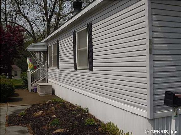 Live for Less!!! Why rent when you can own this 1500 Sq. ft.3bdrm 2bath double wide mobile home. Home located near the entrance of the East Sides most prestigious mobile home park. Couple that with the Pittsford School District and you have a winning combination. Updates include flooring, Trex deck, h/w tank, paint, and windows. Features include wood burning fire place, kitchen appliances, microwave, washer/dryer, window treatments and shed. Utility budget $165 per month. Some funishings available with purchase!!! Professionally managed. CALL TODAY!!!