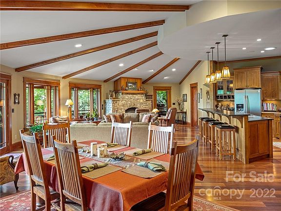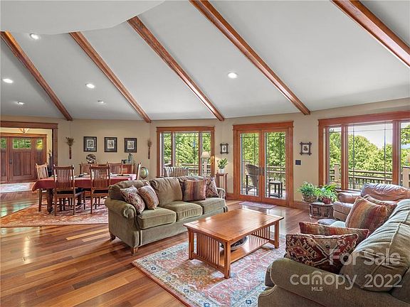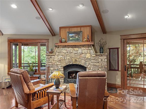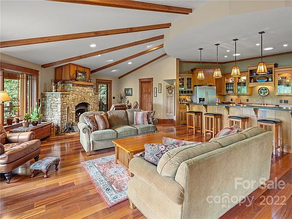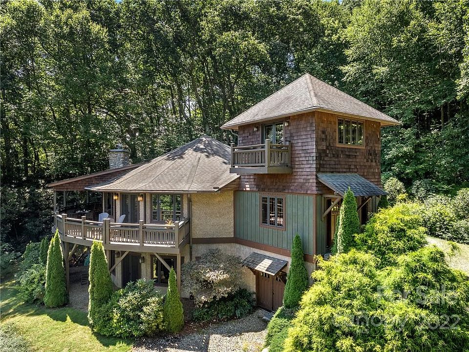 The video link in the Web URL below tells the story. This private home was created for those who appreciate the arts and crafts tradition and living amongst the trees. Enjoy porch living on a wrap around deck with long range mountain views. Professional audio and lighting where acoustics are in perfect pitch in every room and artwork is accented. A handmade spiral stairwell railing leads to a studio/office with a private balcony for stargazing. The kitchen is in the center of the home with custom cabinetry and hand forged hardware. Stacked stone wood-burning fireplace makes a cozy hangout spot. The office/study has built in bookshelves, and a projector with hidden screen. Take the stairs down to the pub which leads into a recreation room/home theatre with bedrooms on either side.The landscape is low maintenance with meadow grass, native trees and flowers blooming all year. Outside a fire pit, two fenced-in gardens and forest abound.