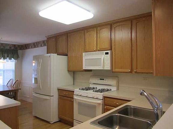 Impeccable 3 bedroom, 2.5 bath, 2 car garage townhome perfectly situated on the cul-de-sac. Barely lived in this 1700 sq ft + home sparkles with lots of upgrades. Hardwood floors, spacious eat-in kitchen with all appliances, soaring ceilings in the great room with corner fireplace, first floor master suite, third bedroom currently used as a loft, neutral carpet, basement ready for your finishing touches, patio to enjoy the private tree-lined area, gated community, conveniently located within walking distance to shopping.