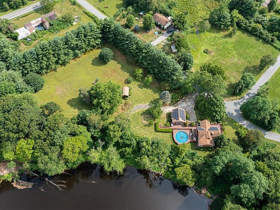 Retreat - Estate like setting, Contemporary with Riverfront Views, Family compound. Main house 3100 and 1400+ sq ft in A Frame guest quarters, ceramic tile and hardwood floors, and windows, windows, and more windows. Skylights as well in Main House with two large fireplaces. Custom kitchen, open concept floor plan, each room w/ a river view, jacuzzi tub in master, also two Walk in closets, Lower level 2 separate entrances with bath. Easy to highways and shopping. Must see to appreciate- Additional Information: Amenities:Stall Shower,Storage,HeatingFuel:Oil Above Ground,