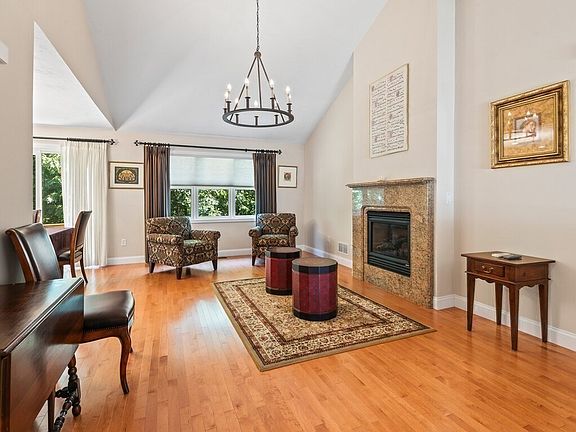 Tucked away in the serene 55+ Grand View Estates, this rare end-unit townhouse offers elegance, privacy, and thoughtful design. Custom-crafted in collaboration with the builder, this home stands apart with refined touches throughout. The upgraded kitchen features abundant custom cabinetry, stainless steel appliances, and opens to a private deck—ideal for morning coffee or evening relaxation. A graceful living room with cathedral ceilings, a fireplace, and designer lighting sets a welcoming tone. Beautiful hardwood floors flow throughout. The spacious primary suite boasts a walk-in closet and en-suite bath, complemented by a guest bedroom, a full second bath, and a versatile office. An expansive, high-ceiling unfinished basement with full-size windows and sliders to a second deck invites your vision—perfect for a hobby space or creative needs. Central air/ heat, along with an attached garage, complete this exceptional home in a peaceful, hidden enclave just off Route 56. *Welcome Home*