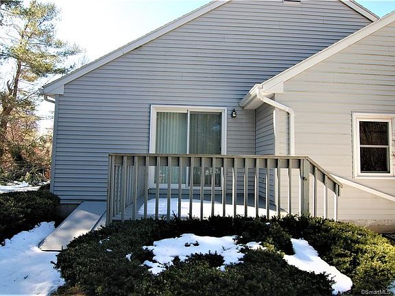 This beautiful and comfortable two-bedroom, 2 full Bath condo RANCH END UNIT is located in Stoughton Ridge; a quiet, sought after locale centrally located off Route 5. It features an easy floor plan that provides a great open room flow for gathering and entertaining. The living room highlights carpeting and a slider leading to your private, END UNIT deck. NO STAIRS IN YOUR NEW HOME The kitchen has an abundance of cabinet space, stainless steel appliances, a gas stove and a new refrigerator. Lots of warm, natural lighting throughout with assistance from the living room skylights. It has two bedrooms on the main floor, Central Air and Natural Gas heating, with plenty of storage space throughout and additional potential living space in your partially finished basement with a stairway to the rear yard. Two washers and dryers are included; one set in the partially finished basement and a second set on main floor, built into a dedicated closet. There's a one car attached garage and plenty of parking spaces for guests. Your deck with privacy offers a great space to relax outside and enjoy your wooded lot from your end unit. Conveniently located off route 5, it offers nearby shopping, dining, and highway access. Don't wait to make an offer on this rarely available property... it's priced to sell quickly