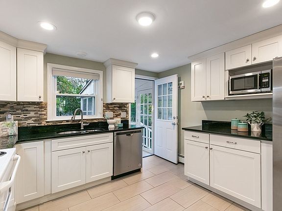 SELLER RELOCATING out of state. MOVE IN READY!!!! You'll love coming home to this immaculate, updated cape full of modern style and perfectly set on a sprawling lot along a quiet street. Natural light fills the beautiful living room graced by shining hardwood floors and a wood-burning fireplace. Inspire your inner chef in the stylish kitchen renovated in 2019 with granite counters, stainless steel appliances, stylish white cabinetry and gas stove. Multiple updates during ownership. Finished basement and added half bath. Added closets in bathrooms and bedrooms, electric heat in sun room, built patios in backyard and front yard, new walkway to the professionally maintained backyard patio and basement. 3 bed, 2.5 bath and 1 car attached garage. Walkout lower level with endless possibilities & 1/2 bath. Walking distance to schools and easy highway access. Enter via the quiet side entrance on Ivan St. into the charming enclosed heated sun porch.