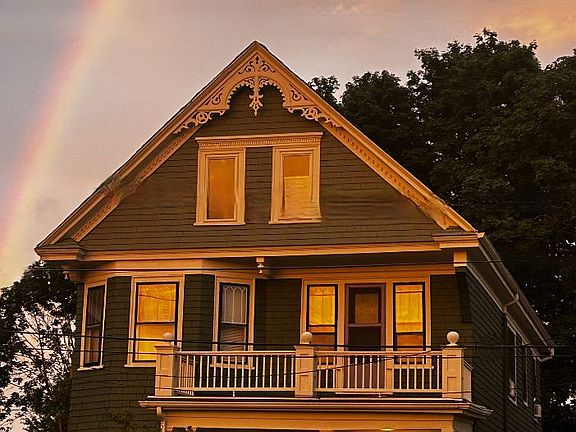 Charming sunny two-family home is ideally located Steps to the commuter rail station, local shops, restaurants, a library, and a YMCA. A Trader Joe's is also coming soon! The freshly painted second-floor apartment features three bedrooms (or two plus a home office) with hardwood floors, high ceilings, and elegant bay windows. The dining room, adorned with a Waterford chandelier and built-in cabinet, is perfect for entertaining. The eat-in kitchen includes a new quartz countertop, appliances, and in-unit washer/dryer for convenience. Enjoy the screened porch overlooking St. Theresa's spire and a beautiful backyard. Additional highlights include a large walk-up attic for storage, a new gas heating system, new Harvey windows, and on-street parking with a permit. This apartment is a perfect place to call home. The owner will cover the water bill, while the renter is responsible for gas, electricity, and cable services. A security deposit is required upon signing a one-year lease. We kindly request that there be no smoking inside the unit or on the property. We are cat-friendly and welcome cats; however, our unsociable little elderly dog has requested no dogs! On-street parking is available with a resident sticker.
