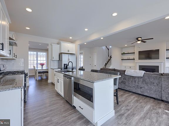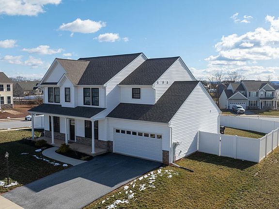 Welcome to your new home at 10 Eli Drive! This spacious, move-in-ready property, built in 2022, offers a fresh and modern living experience that feels just like new. Nestled on a desirable corner lot, the home features a beautifully fenced-in yard, perfect for privacy and outdoor enjoyment. Upon entering, you’ll be greeted by a bright and open floor plan that creates a welcoming atmosphere, ideal for both daily living and entertaining. Just off the foyer, you’ll find a private office—perfect for working from home—and a formal dining room, offering elegant spaces for gatherings. The heart of the home is the chef-inspired gourmet kitchen, complete with sleek stainless steel appliances, stunning granite counter tops, a large island for meal prep or casual dining, and a cozy breakfast area for enjoying your morning coffee. The expansive living room seamlessly flows into the kitchen, creating a spacious, open-concept area perfect for hosting guests or relaxing with family. It boasts a fireplace surrounded by custom built-in shelving, adding both warmth and style to the space. Upstairs, you’ll find three generously sized bedrooms, guest bathroom, a convenient laundry room, and a primary suite. The finished lower level provides additional living space for relaxation and entertainment. Here, you’ll discover a cozy family area, a wet bar, a half bath for added convenience. Step outside to your private, fenced-in backyard, where you can unwind or entertain on the covered rear patio, which is equipped with a ceiling fan for comfort. Located in a prime area, this home is just minutes from schools, parks, restaurants, shopping, and local amenities.