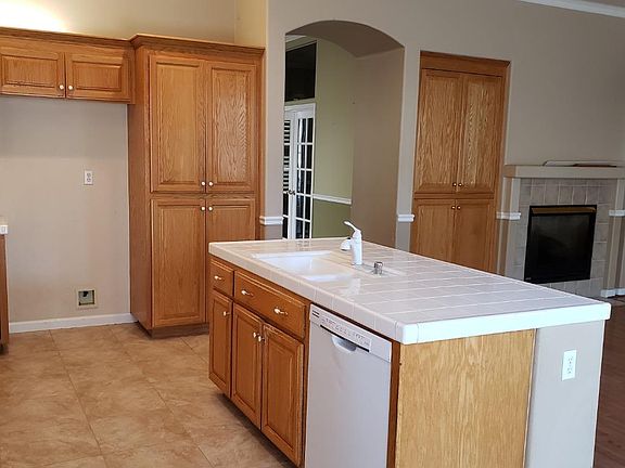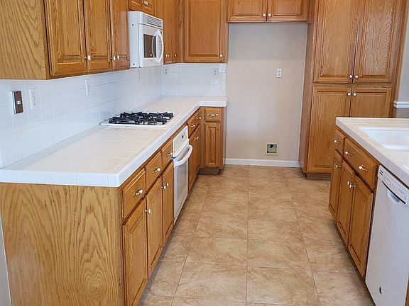 - Kitchen: Oven Range - Built-In, Garbage Disposal, Microwave, Countertop - Tile, Exhaust Fan, Cooktop - Gas, Island with Sink, Gas