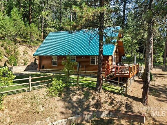 Beautifully maintained by its original owners, this log home sits on 1.54 private acres, offering peace and seclusion in a stunning mountain setting. A wall of windows welcomes guests with natural light and timber views. The main level features two bedrooms and a full bath, while the loft—currently used as a third bedroom—offers its own full bathroom and flexible living space. Step out onto the newer Trex deck to breathe in the mountain air and watch the elk and deer roam by. Outside, the manicured lawn is complete with a firepit for starlit evenings, a garden area, and a storage shed for all your gear. With automatic sprinklers, community water and year-round road maintenance, mountain living is made easy! Just 60 scenic minutes from Boise, Garden Valley delivers the ideal mix of adventure & peaceful retreat. Enjoy access to rafting, hiking, snowmobiling, trails, pickleball and golfing, al located nearby!