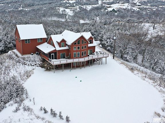 This Lewis & Clark Lake home in Elkhorn Ridge is a beautiful and unique property with a lot of features. The property boasts a vast, protected water view that can be seen from every level, which is sure to provide a stunning and relaxing atmosphere. The house itself is quite large, with 8 bed 5 bath, making it a great option for a large family/group gathers. The kitchen is well-equipped with a Jenn-Air gas stove and fridge, as well as maple kitchen cabinetry with slide-outs and a pantry closet, which will make cooking and storing food a breeze. Additionally, the property has a laundry room and a den/office space on the main floor, providing plenty of space and versatility for various needs. The 3 heating/central air units are sure to make managing the property and its utility costs easy and efficient. The attached garage 30X30, with an additional 18X36 boat garage near the entry to the property. Elkhorn road is a county-maint. road, providing easy and convenient access to the property.