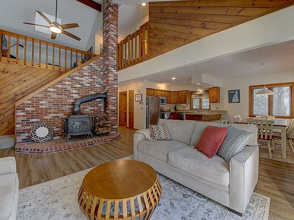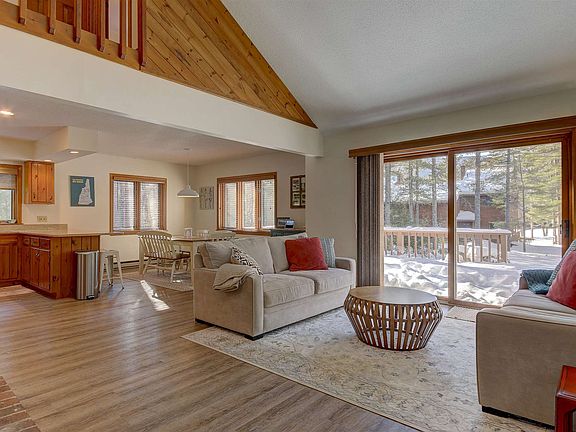 This tastefully renovated, spacious, 3 bedroom, 3 bath Brook View Village townhome, conveniently located off of North Conway's West Side Road, is one of Mt Washington Valley's best kept secrets. After entering through the large mudroom, you will find the bright, open concept main level with cathedral ceiling living room, cozy wood stove with brick hearth and backing (You'll love the exterior wood shed), sliders leading to the huge back deck, dining area, kitchen w/stainless appliances and granite countertops and beautiful vinyl plank flooring. There is also a full bath and bedroom on this level. The 2nd level features a loft living area, primary bedroom suite, the 3rd bedroom and an additional bath. The finished lower level offers a large family room, office space and plenty of storage. Hike to Diana's Baths or the Moat Mountains right from your doorstep or simply take in the beautiful views to Cathedral Ledge from the peaceful association pond. Just 5 minutes to North Conway Village too!