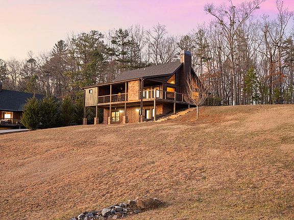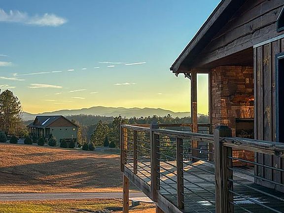 Discover the epitome of mountain living in this expansive 4 bedroom, 4 bathroom cabin, a serene retreat conveniently located just 15 minutes from downtown Blue Ridge. Enjoy an open floor plan that connects the kitchen, living and dining areas, highlighted by walls of glass that showcase breathtaking mountain views. The kitchen features custom wood cabinetry, stainless steel appliances, granite countertops and hardwood floors. The living room boasts a huge stack stone fireplace, adjacent to a walk-out covered porch with another stone fireplace, perfect for enjoying sunsets with the backdrop of panoramic vistas. The primary suite, located on the main floor, offers a peaceful escape with a tile shower, his and her vanities, walk-in closet and direct access to the beauty outdoors. Additionally, the thoughtful layout includes a laundry closet on the main floor, ensuring practicality matches the home's quality. Descending to the lower terrace reveals an entertainment lounge, complete with a wet bar, where concrete floors add a touch of modern industrial flair. This level also offers a walk-out, covered concrete patio, providing additional outdoor living space to enjoy the surroundings. Accessibility is effortlessly achieved with all paved roads leading to a gentle, large gravel driveway, offering ample parking and the potential for a garage addition. Offered furnished, this cabin is ready to welcome you home.