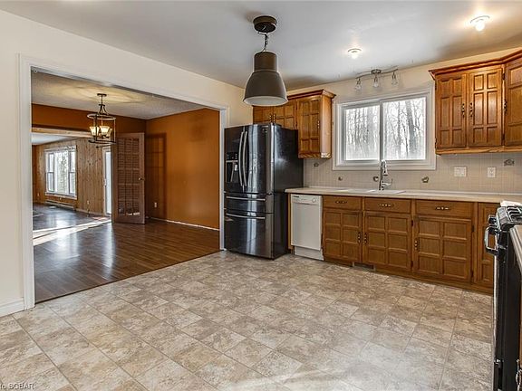 Perfect country home, 4-season cottage or rental property. One minute walk to your private sandy beach used by only 9 neighbors (deeded ownership). Located in a very quiet, sought-after area, surrounded by a greenbelt. Nature trails, perfect for hiking, skiing, ATV and snowmobiling. 3 Golf courses nearby (10 min.). The property is over half acre, has a fully fenced back yard and backs onto nature/trees. This brick bungalow offers 3100 sq. ft. of living space with 1800 sq. ft. on the main floor and 1300 sq. ft. in the basement. The main floor has 3 bedrooms, large living area with natural gas fireplace, separate dining area, 2 bathrooms and a great room with seasonal water view and access to a deck. The basement has a seating area, two large rooms to accommodate guests, a cold room, laundry room, storage room and a 4-pc bathroom. This home has many recent upgrades such as: a new drilled well (2019), new septic tank (2019), new windows (2020), new modern fridge (2020) and a new dual sump pump (2021). The gas furnace and central A/C were new in 2015. Covid rules apply - 2 adults + 1 agent - no children (until restrictions are removed) - Masks required