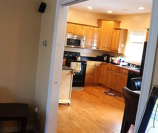 This lovely and welcoming attached single family features an open floor plan, 3 bedrooms, 3.5 bathrooms ,HAS CENTRAL AIR and is ready for the discerning Buyer! Freshly painted throughout, hardwood on entire main level, with the exception of the half bath which has ceramic tiles. The spacious eat-in kitchen has gleaming oak cabinets, appliance package, a mobile island and leads to the deck and the yard furnished with a swing set perfect for playtime! Great lower level fully finished,used as a family room, has ceramic tiled floors, has full bathroom and closet for additional storage. The upstairs with the 3 bedrooms features a roomy master bedroom with MASTER BATH and walk-in closet. Property has a garage, 2 DRIVEWAYS with 4 additional off street parking. Close proximity to shops, transportation and highway! Make this your home today.