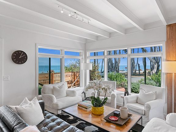 FRONT LINE OCEAN VIEW PROPERTY. White water ocean & bay views abound along with the stunning coastline from inside all the main rooms of this wonderful mid century modern updated beach property! Walls of windows and abundant light throughout this extremely cozy and comfortable home. 4 bedrooms & 2 bathrooms - special touches throughout. There is a 1 car detached garage with an additional bonus area for an extra office space or storage. Fabulous lot may offer expansion potential. 30 day vacation rental may be possible. Buyer to investigate if desired. Truly one of a kind special.