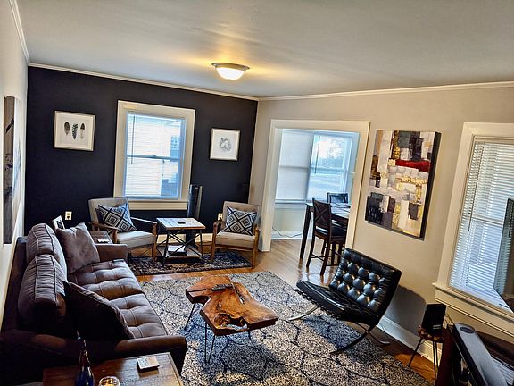 First floor unit with beautiful hardwood floors, updated eat in kitchen, large living room, dining room surrounded by windows, and 2 perfectly sized bedrooms and 1 full bath. Laundry in Basement. Garage included with rental. Available Now Landlord may consider pet. Tenant pays: cable, gas, and electric Landlord pays: water and sewer