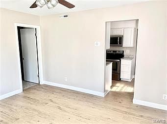 Charming 2 bed, 1 bath home located on quiet, dead end street on oversized lot. Front door leads into the living room which offers an abundance of natural light. First bedroom to the left of the living room holds full bathroom. Kitchen is newly updated. You will find the second bedroom off of the kitchen. Use this spacious room as another bedroom, family room or bonus room. Basement holds washer and dryer and walks out to the patio in the fenced in backyard. Flooring throughout home is updated. Close to 1-55, 1-64, STL and shopping. This is a NO SMOKING, NO PET HOME. Application fee $50.00 per applicant over age 18. Credit, criminal, employment and evictions will checked. Holding deposit due within 24 hours of approval. MILITARY DISCOUNTS MAY APPLY PLEASE ASK!