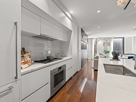 Luxurious 2,125 SF Seaport residence. PRICED TO SELL due to job relocation. Step into the lobby and enjoy the rare convenience of DIRECT ELEVATOR ACCESS into this 2BR, 2.5BA safe haven. Built in 2018 then finished with $500K in meticulous upgrades, this city condo feels more like a suburban home. Located on a dead-end street intersecting Seaport Blvd by only a walking path provides tranquility amidst the city's pulse. Floor-to-ceiling windows include beautiful custom shades and drapery, powered by Lutron. Upgraded wide plank Espresso HW flooring throughout. Chef’s kitchen adorned with a suite of Gaggenau appliances, 10 ft center island, marble waterfall countertops, European lacquer cabinetry, & a custom pantry complete w/ a frosted-glass barn door. Lighting fixtures upgraded to Restoration Hardware chandeliers. Woodmeister designed custom cabinetry with hidden storage throughout. In-unit custom laundry station. Primary Suite upgraded with a breath taking walk-in closet... A MUST SEE!!