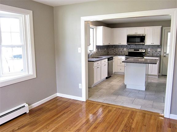 The newest, quality renovation by TCP HOMES INC. is modernized completely w/updated plumbing & electrical. Newer roof,furnace & windows. Clean,crisp white cabinets, prep island w/seating, sleek granite countertops, tumbled stone backsplash, new SS appliances and tiled floor in the Kitchen create an open floor plan into the Dining Room w/bay window. Gleaming, newly refinished hardwoods throughout to include the Dining Room, Living Room and 1st floor Bedroom. Freshly installed Bath w/all new fixtures & custom, accented tile complete the first floor. Two Bedrooms on the 2nd floor. Walk out to the covered back porch & see the perfect for entertaining, expansive, manicured lawn w/mature landscaping, light up the BBQ! There is a large storage shed, town water & passing Title V. Minutes from Rt.20, 12 and 395, Close to Mass Pike access.