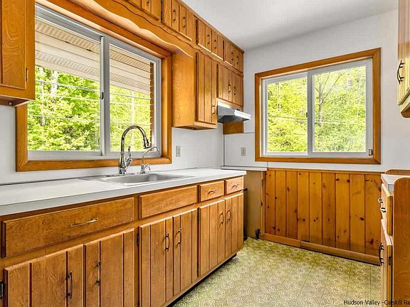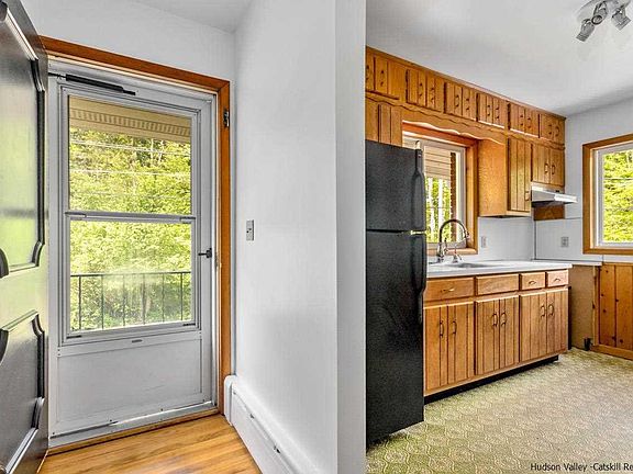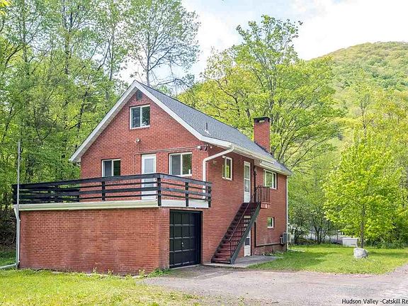 This low maintenance, cape-style brick home is nestled amongst mature trees on a .77 acre lot. Upon entering you can’t miss the care that has been taken in this home with fresh paint and gleaming wood floors, offering a truly turn-key opportunity. The property is adjacent to Hunter-West Kill Wilderness, a mountainous forest preserve, and Stoney Clove Creek, offering a multitude of experiences as well as privacy. With 2-bedrooms and 1.5 baths, this home is a perfect upstate escape. The lower level even has potential for extra living space to grow and expand your life’s vision. In the summer, the open porch is perfect for enjoying the sun and in the winter an attached garage will protect your car from the snow. Inside the wood floors and wood burning stove provide a sense of charm synonymous with the upstate environment. Gather around the centrally located wood stove in the bright living room that has mountain views right from the window. A finished, walk-up attic is the perfect space for an art studio or media room. The potential is endless with upper and lower levels of unused space allowing the house to become anything you dream. Property is in ZONE X, We verified with a local insurance company that the home does not require flood insurance.