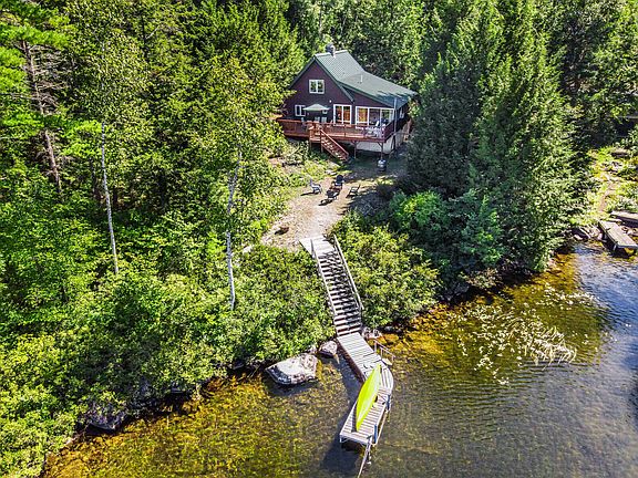 LONG POND Find your own lakefront escape at this 2BR+loft/2BA year-round home prominently sited on 0.45± acres with 100'± of private lake frontage & breathtaking nightly sunsets! This is a retreat for both serene relaxation and beautiful days spent out on the water, offering a private dock, a mooring, a great deck, and an outdoor fire pit overlooking the lake. This beautiful spot is often shared with loons, ducks, deer, bald eagles, and some of the best fishing you'll find in the cleanest water of the seven Belgrade Lakes. Home features open floor plan, 1-floor living, spacious back & lakeside decks, open lot with unobstructed lake & mountain views, cathedral ceilings, exposed beams, wood floors & fantastic field stone, wood-burning fireplace. Brand new primary bedroom ensuite features vaulted ceilings, a wall of sliders that bring the views inside, full bath with shower, laundry, double vanity, toilet closet & storage closet. Renovated custom kitchen with new slider for direct access to lakeside deck offers recessed lighting copper faucets, cupboard knobs & pot filler, stunning agate tile backsplash, gorgeous quartz countertops, farmers sink, coffee bar and brand new SS gas stove, range and refrigerator. Storage in an insulated basement is perfect for water toys or snowmobiles. The property, a winner of the state's LakeSmart Award, is a short stroll from a private community beach, a playground, and a large, grassy picnic area. Swim right off your dock with steps leading into the water or find even easier access on the property in a small cove in the woods. Traverse the lake in only a few minutes by boat to the Belgrade Lakes Village, which embodies quintessential New England charm. Stop by the Day's Store for great ice cream or the Village Inn for a nice dinner. Close to golfing & village, short commute Augusta & hour to Sugarloaf - a great retreat, home base or investment property as it is currently a successful short term rental!