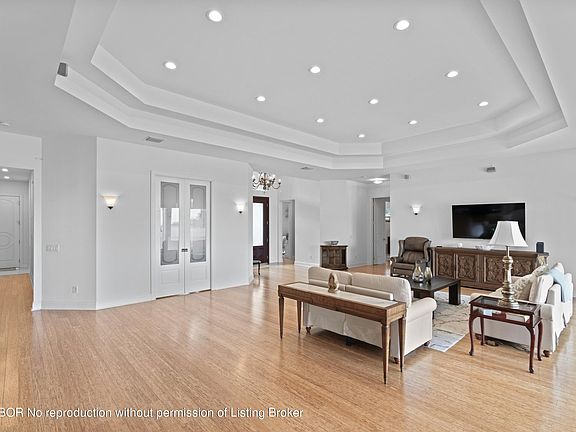 Welcome to 10 Firestone, a luxurious 4-bedroom waterfront estate in Presidential Estates. Built in 2016, this stunning residence boasts serene lake views, high ceilings, and bright interiors. The spacious kitchen featuring a wine cooler is ideal for any chef and the grand outdoor patio is perfect for entertaining. Park 3 cars in the garage! Outdoors, enjoy the saltwater pool with a grilling/bar area as well as an expansive backyard.