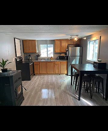 This is a charming single wide mobile home on its own 0.64 of an acre! This property is on the outskirts of Claremont close to all the great ATV/ Snowmobile trails! A beautiful stream runs along the back yard along with 2 storage sheds! Plenty of space for all your out-door needs! The house was just freshly updated with new windows, appliances, drywall, laminate flooring, toilet, shower/bath combo, pex water pipe with insulation wrapping, new 40 gallon hot water heater (electric), and hardwired smoke / carbon dioxide detectors . So much I know I’m missing some stuff! This property is move in ready! Unfortunately due to age it won’t qualify for a loan. $69,999