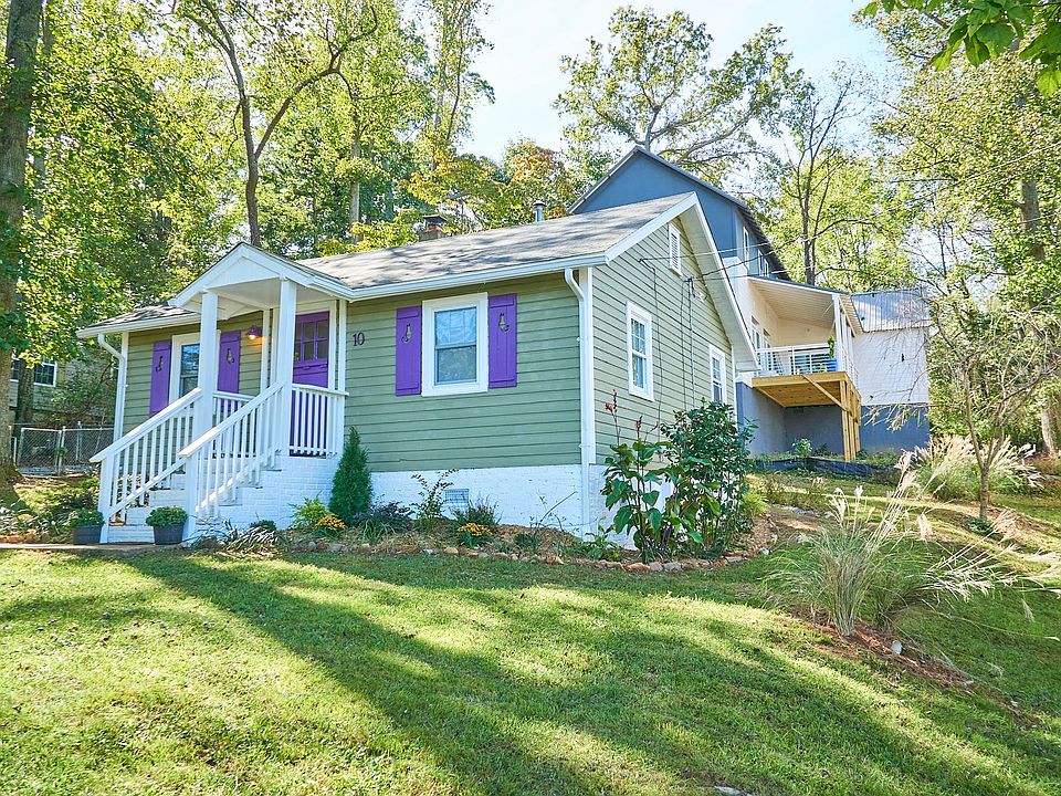 Location. Location. Location. Tucked into the rear of Brucemont Circle, this adorable, pet-friendly cottage is situated in a prime West Asheville location. An 8-minute walk to Sunny Point restaurant, this 1940 s cottage is nestled behind a safe & historic community just steps to both Haywood and Patton! The 1br/1ba home has been lovingly renovated to combine historic charm with a contemporary flair. Suitable for a single tenant or couple, the home has a large, partially shaded yard and outdoor patio with built-in bench. The bedroom features a walk-in closet and great natural light, and the bathroom features a classic oversized tub & shower. The living room boasts a vaulted ceiling, showcasing exposed beams and the whimsically curved original chimney. Hardwood floors throughout home, plenty of storage and cabinets and a bar-style dining area made of Acacia wood. The kitchen is large and open, with modern appliances, and the home also features a mini-split A/C & heat system as well as a new washer & dryer. Outside, the back yard has an open, sunny feel, while the established trees out front provide a great mix of shade. In addition to ample street-side parking, there is a private driveway large enough for 3 cars, or useful for trailer, camper, etc! Landscape services are included in the lease. Tenant is responsible for all utilities. Pets are allowed, with owner approval, and will require a $250 non-refundable pet fee. Available immediately for 12/mo lease. Showing by appointment only. Owner pays for landscaping. Tenant pays utilities (electricty, gas, water, waste)