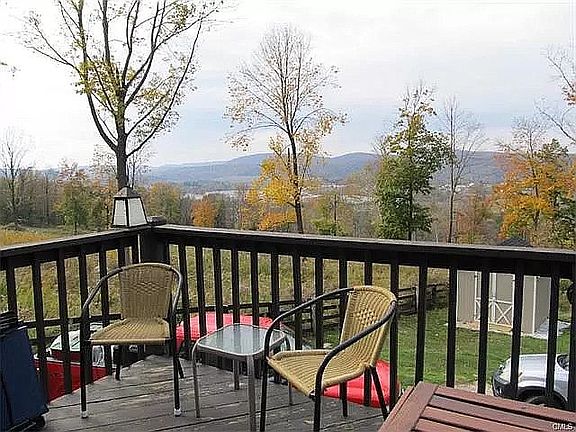 2/3 bedroom home nestled on a country hillside with distant views overlooking down town New Milford. The upper level has 2 bedrooms and a full bath. The main level offers a newer kitchen with eating area, stainless appliances, a guest bath and living room with sliders to the large private deck to take in the views. The lower level can be used as a third bedroom, den, office or recreation room. Full Laundry hook-ups, and a storage area. Recently replaced oil burner. Parking on driveway.
