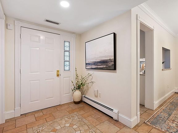 Foreside Commons is a premier condominium association with private waterfront access, impeccably maintained grounds with an abundance of amenities! Renovated, and thoughtfully laid, this blend of elegance and functionality allows for comfortable, carefree living so you can enjoy your home and not be bound to caring for it! Step into the stylish front entrance adorned with a natural stone floor medallion, open staircase, and a half bathroom with wainscotting and gold accents. The kitchen is a chef's delight with stone countertops, custom beadboard cabinetry, and pantry- open to the dining room, perfect for entertaining. The living space, trimmed with regal crown molding, built-ins bookcases surround a marble wood burning fireplace, and French doors leading to a four-season sunroom bathed in natural light! Upstairs, retreat to the primary bedroom sanctuary complete with an en suite bathroom, double closets, and in suite laundry. A second bedroom provides flexibility, while a newly installed guest bathroom showcases glossy ceramic subway tiling and a deep bathtub shower for relaxation. Convenience abounds with a direct-entry garage of which is home to efficient Buderus heating system.Additional and storage space above garage. Residents enjoy a tranquil waterfront setting between the vibrant hubs of Falmouth and Portland. Embrace a lifestyle of leisure with access to waterfront trail, kayak racks and launch, tennis and pickleball courts, an outdoor swimming pool, clubhouse, and lush plantings, creating a welcoming community atmosphere. Don't miss the opportunity to experience the best of coastal Maine living at 10 Foreside Commons!