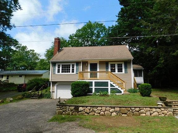 Country living is a pleasure in this 4 bedroom cape. This hilltop home overlooking Phillips Pond with water views from the huge screened and cable ready porch. Dine outside on the patio on beautiful summer nights! First floor master. First floor full bath. 3 Bedrooms upstairs with a brand new bathroom! Spacious living room with wood stove. Custom oak floors through out. Dining room with built ins and wall a/c. Fenced back yard for pet or child safety. Work shop area and laundry room in basement. Brand new front porch, railings and stairs, as well as side side stairs and railings. Large shed for storage, and extra parking across from house. (Forest road runs though the property). Showings start 7/10 at open house.