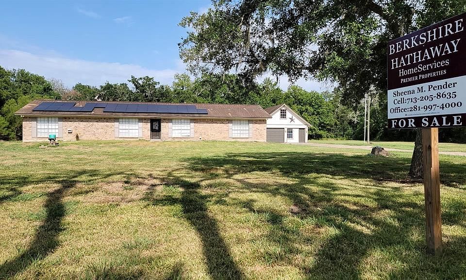 Come see this stunning ranch style 4/3/Detached garage/Loft on 3.1 acres located on a quiet cul de sac established in the country part of Angleton but close enough to town. Once you step inside you will be impressed with the open concept kitchen/dining & living area are perfect for entertaining. Over the past few years many upgrades such as kitchen countertops, appliances, solar panels were added and just recently newly painted interior and exterior. This home features a spacious kitchen with tons of prep space, living room has a newly painted wood burning fireplace. This 4-bedroom home has a split floor plan. Three rooms are spacious with two bedrooms having a jack n jill bath. Your hall bathroom is a full bathroom with a walk-in shower. Outside you will enjoy the tranquility of the tall tree lines that surrounds your property for the best privacy. You can relax with your choice of two burn pits. The garage features a his and her side with an upstairs loft.