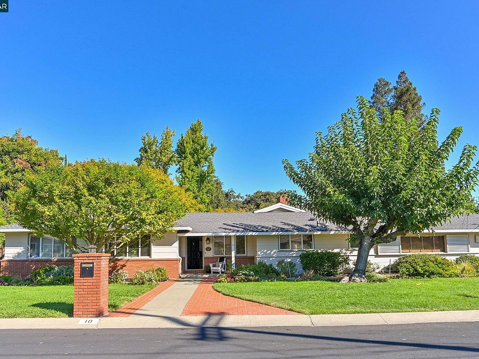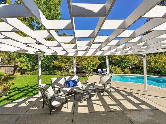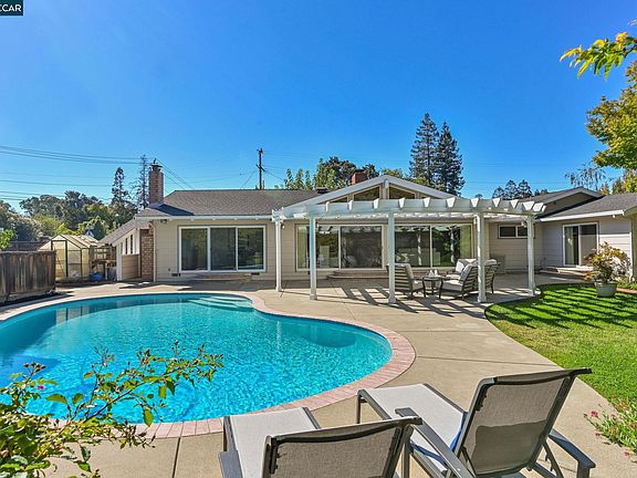 First time ever on the market. Rare opportunity to live close to downtown Walnut Creek on a flat lot in desirable Maywood Estates. Spacious floor plan with lots of curb appeal features a side entrance garage. Walls of glass opening to backyard entertaining and pool area brings the outside in. You'll love entertaining family and friends in this park like yard with mature trees, lots of lawn areas, large pool and expansive patio areas. Separate area with fruit orchard and custom designed workshop with possible use as detached office. Remodeled and expanded kitchen with lots of cabinets, recessed lighting , granite counters, Thermador five burner gas range and hood. Kitchen opens to separate eating and living areas. Huge master suite features two cedar lined walk-in closets. Large secondary bedrooms with cedar lined walk in closets and organizers. Spacious living areas with vaulted ceilings, hardwood floors, floor to ceiling fireplaces, built in cabinetry. Interior freshly painted September 2022, carpet installed September2022. Close to BART, restaurants, Iron Horse Regional Trail, Contra Costa Canal Trail, and community parks. The homeowners dues are for access to Contra Costa Canal for exterior watering. (See disclosures.) Sun Power solar panels are owned.