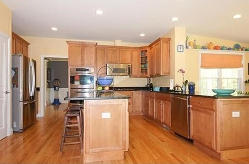 Stunning Colonial on large lot abutting conservation land. 4 large bedrooms, 3.5 baths & gorgeous hardwoods throughout the first floor. Gourmet kitchen features stainless steel appliances, granite, center island, & dining area. Formal living room, formal dining room w/ beautiful wood trim, fireplaced family room, conservatory w/ vaulted ceiling. Master bedroom w/ tray ceiling, massive walk in closet, & stunning en suite bath w/ jacuzzi tub & dual vanity and second walk in closet. 3 car garage, hardscaped patio with firepit. 14.4kW Solar Array. Updated first floor dual fuel heating (heatpump/oil) .