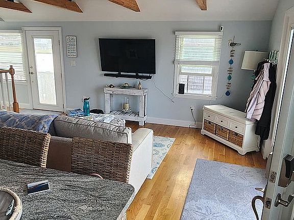 Showings available after June 4th. Location! Location! Location! Get ready for spectacular sunrises and sunsets! All you need is your boat, kayak, and beach chair for this one! Just two houses away from the South River with Humarock Beach a tenth of a mile more! Home is walkable to two of the best local restaurants! In 2019, this adorable cottage was completely remodeled down to the studs. Move right in to your 2-bedrooms and 1 1/2 baths oasis. Be confident nothing was missed – new roof, windows, doors, plumbing, electrical, HVAC, and composite decking. The main bath was upgraded to a seamless entry, walk-in shower in 2022. The home offers an open floor plan, a kitchen with stainless steel appliances, upgraded countertops, backsplash, and a huge island. The main living area has vaulted ceilings with show stopping, exposed beams and a ceiling fan. The full walk-out basement has massive ceilings for a home of this age with an abundance of storage and a half bath. The home also features a near new (also 2019) whole home generator which runs everything, including the A/C, for peace of mind. On the exterior, Azec skirting was added to the front and side of the home in 2022. Rinse off all the sand from your beach jaunts in the outdoor shower that includes hot and cold water and then hang out in the back yard on the newly installed lawn. All appliances, including the washer/dryer and TV, come with the home. Other furniture and wall art negotiable. Are you ready to make your dream of living in Humarock a reality? Nothing to do to this home for years. All you have to do is move in!