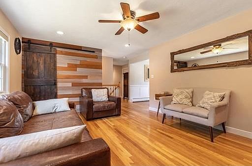 Desirable Jackson built raised ranch. Main level features include custom kitchen with maple cabinets, SS appliances, center island & granite counters. Slider from dining area leads to private deck and large backyard. Fireplaced living room with hardwood, recessed lighting and barn-board accent wall with closet. Three spacious bedrooms all with hardwood floors. New tiled full bath. The lower level offers a spacious family room with fireplace 3/4 bath and access to the one car garage. This home is located in a beautiful North Wilmington neighborhood situated on a cul-de-sac close to Route 93 and Boston Commuter train!