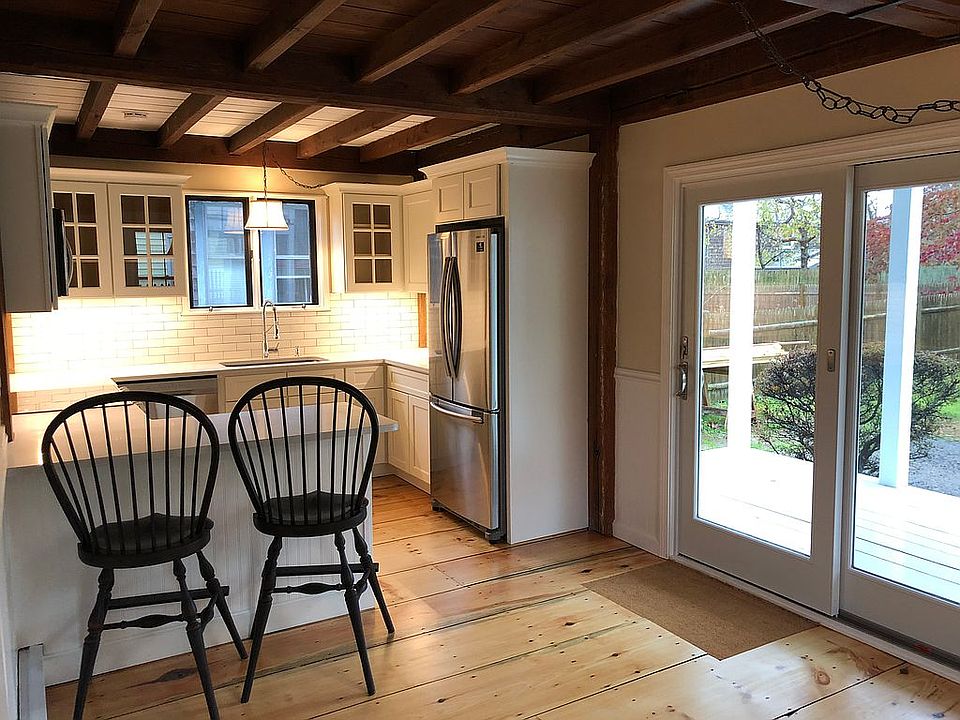 This home has been FULLY renovated and updated! New Roof, renovated Bathrooms and Kitchen. New stainless appliances, Wide pine floors and more. This charming Post & Beam Colonial is located in the North End of Newport near Vernon and Braga Park which includes a ball field, playground, and tennis courts. This quiet family neighborhood is minutes from the beaches, harbor, downtown, and restaurants. It's also close to the Navy Base and Newport Bridge. Built with a unique classic design, the main level has gorgeous wide plank pine floors, centrally located large brick fireplace, eat-in-kitchen with additional dining area, porch off the back with deck, 3rd smaller bedroom which could be used as an office or den, living room, and 2 full baths. The second level consists of two equally sized bedrooms with equal access to an adjoining full bath with tub. The bedroom off the back has a terrific deck large enough for multiple lounge chairs. Both bedrooms have adequate closets with additional storage space in the hallway linen closet and attic. The basement has an inviting finished recreational room, laundry area, and large freezer.