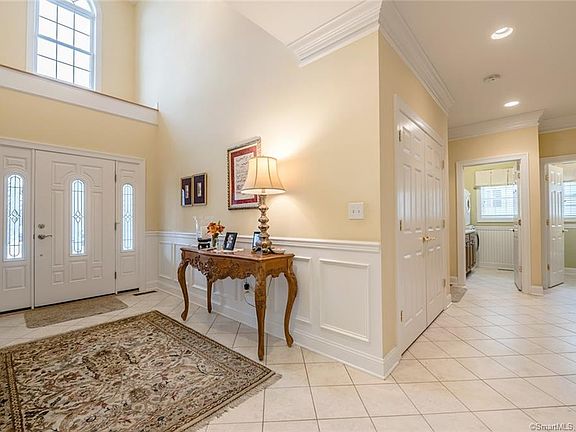Beautiful Colonial in maintenance free Heritage Pointe community. Grand Entry boasting gorgeous window box moldings and crown moldings. Large study lined with bookshelves to make the perfect home office or library. Amazing open floor plan with hardwood floors as your kitchen with stainless steel appliances, granite countertops and eat-in area opens to your family room with surround sound and gas fireplace. Sunroom portion of the space featuring radiant heating and walls of windows full of natural light and scenic wooded views. Sunroom has sliders that lead to your private trex deck perfect for summer barbecues! Perfect first floor Master Suite with recessed lighting, private bath and walk-in closet. Also featured on the main level is the laundry room, powder room and entry from your 2 car garage. The second floor offers two additional large bedrooms. One of those bedrooms offers a walk-in closet and a huge storage room which lends itself to the creation of a 2nd floor Master Suite. There is also a 3rd unfinished room currently used for storage which could be converted into a 4th bedroom. As if this were not enough the amazing LL offers ample storage and a huge finished family room, with French doors to your private stone patio overlooking a wooded area. LL also offers a full bath and ample storage. Located in the Huntington section of town and a short distance to shopping and restaurants, and Rt 8 with easy access to 195 and Rt 15 make this a perfect commuter location!