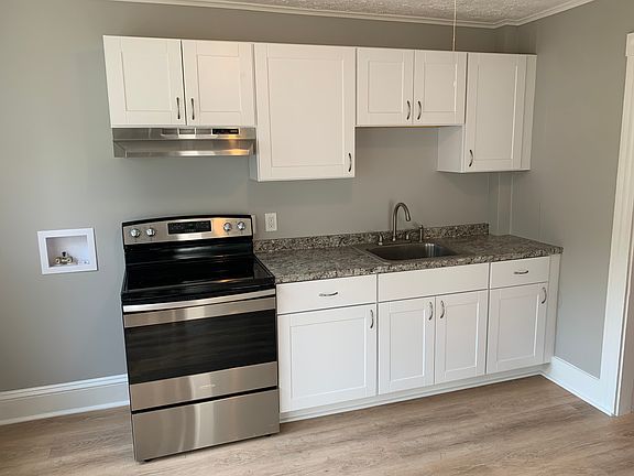 - Small Kitchen with stainless steel appliances located off of the living room.